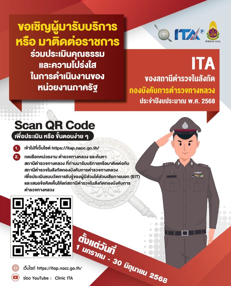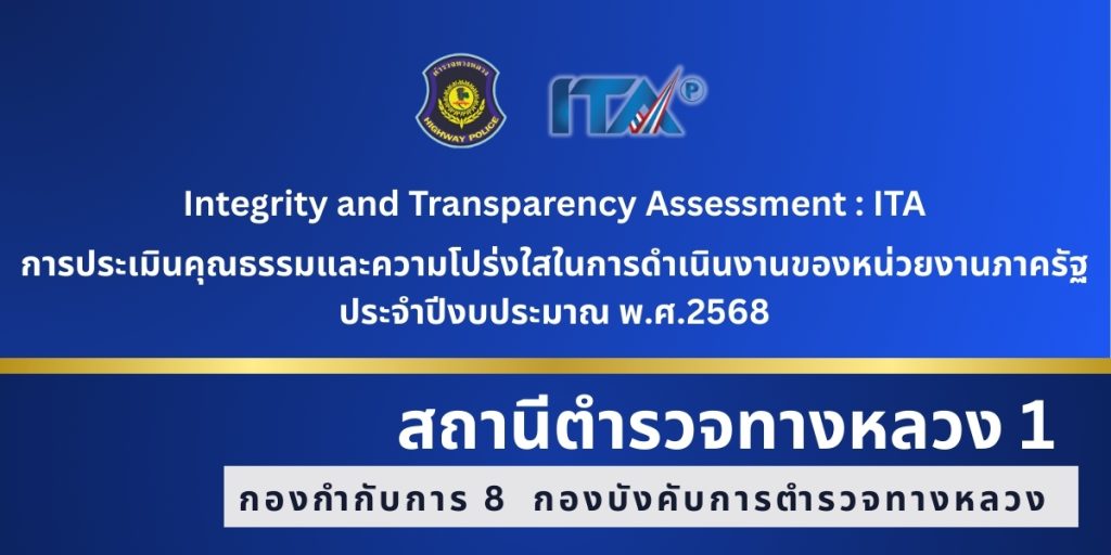 ขอเชิญประชาชนทุกท่าน ร่วมตอบแบบสอบถาม การประเมินคุณธรรมและความโปร่งใส ของ สถานีตำรวจทางหลวง 1 กองกำก