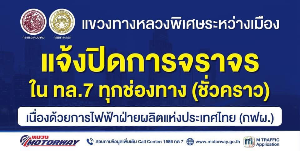 ประชาสัมพันธ์ แขวงทางหลวงพิเศษระหว่างเมือง แจ้งปิดการจราจร ใน ทล.7 ทุกช่องทาง เป็นการชั่วคราว เนื่อง
