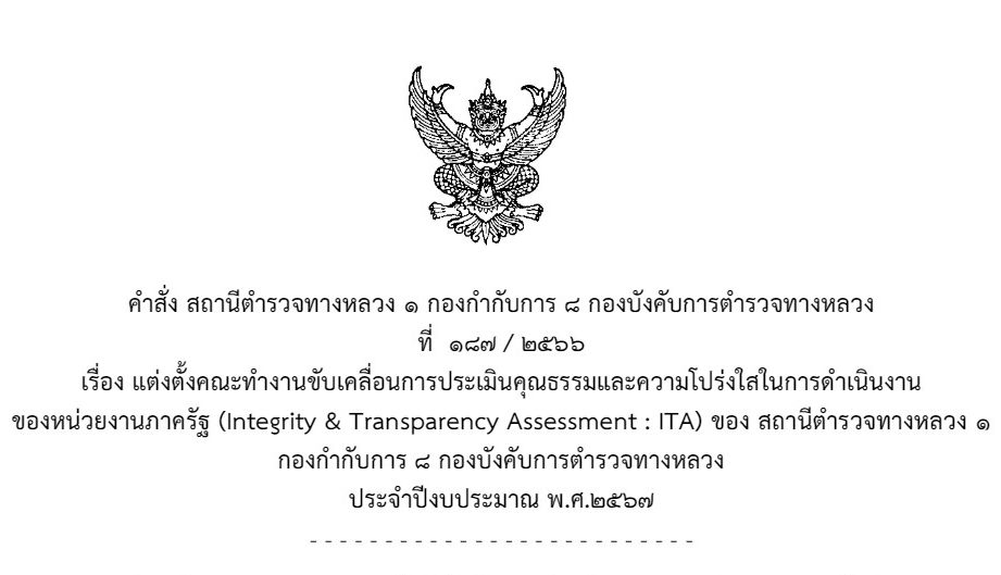 สวญ.ส.ทล.1 กก.8 บก.ทล. แต่งตั้งคณะทำงานขับเคลื่อนการประเมินคุณธรรมและความโปร่งใสในการดำเนินงานของหน่