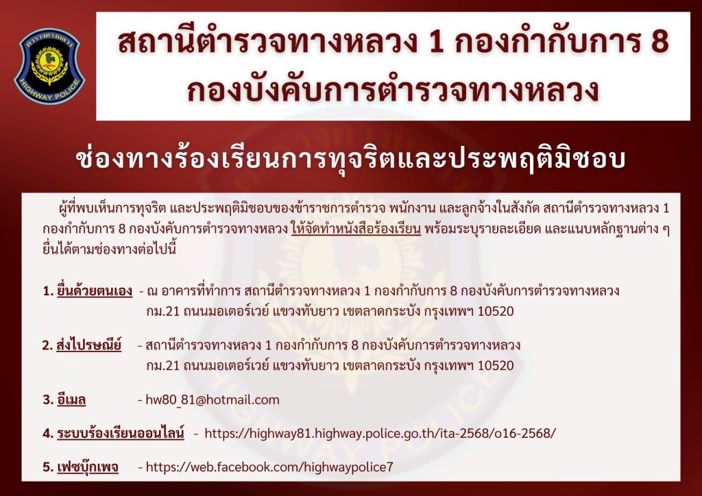 3. ระบบร้องเรียนออนไลน์ ส.ทล.1 กก.8 บก.ทล.
